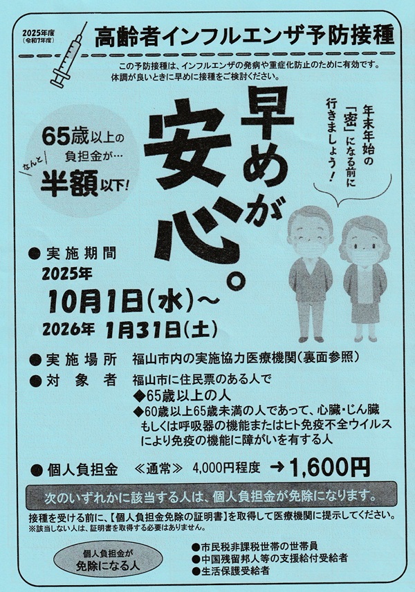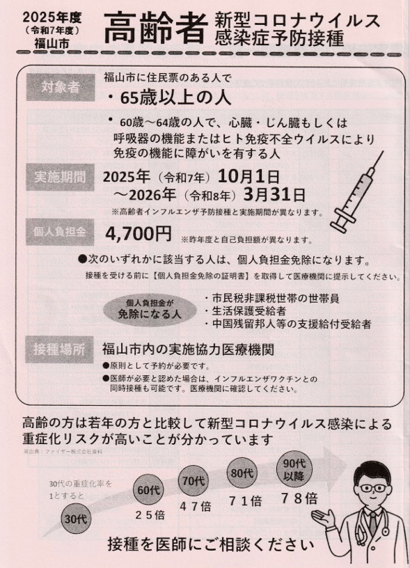 2025年度 高齢者インフルエンザ予防接種・新型コロナウイルス感染症予防接種について