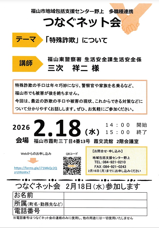 つなぐネット会にて「特殊詐欺」について開催します。