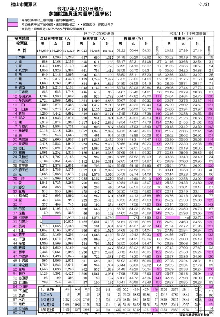 詳細は下の資料をクリックして下さい 添付資料は、至近の選挙の投票率です