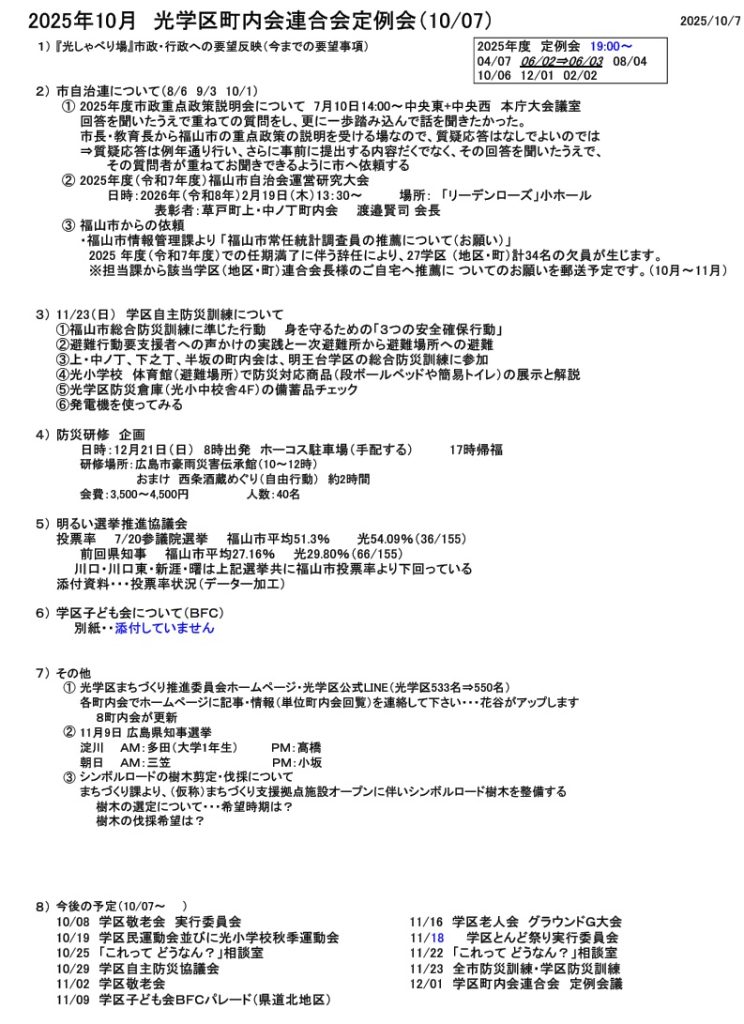 2021年10月 光学区町内会連合会定例会(2021.10.04)