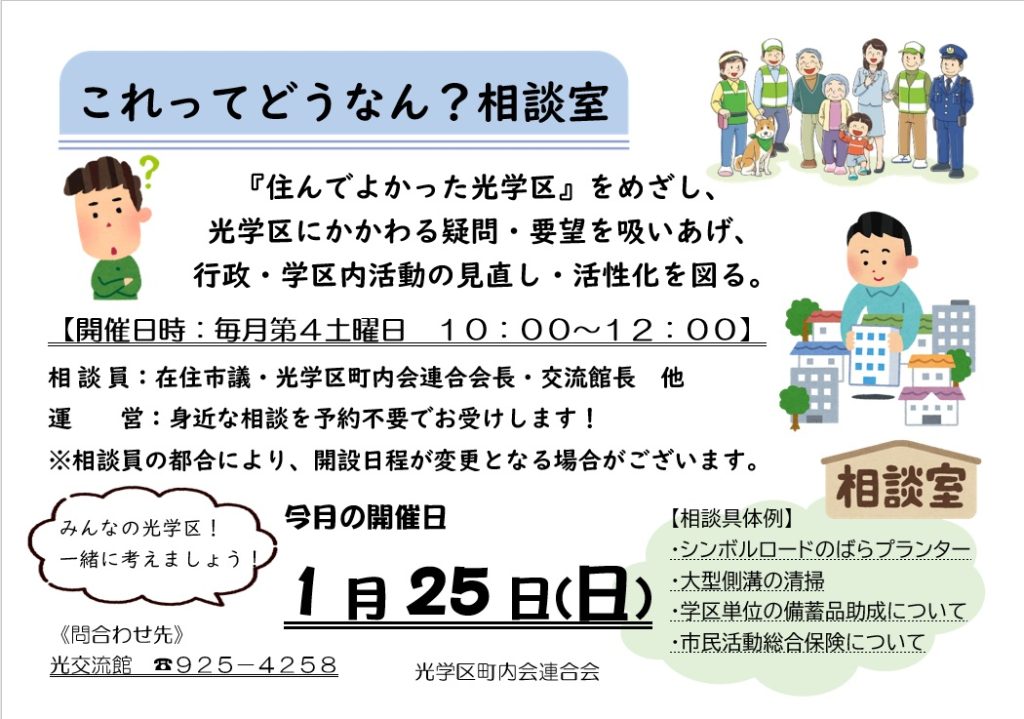 毎月第4土曜日に光交流館にて、学区の身近な相談を受け付けています。
