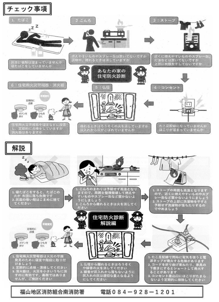 本日、民生委員として対象宅を消防署員と一緒に防火について、診断・確認を兼ねて回りました。資料をいただきましたので参考にして下さい。