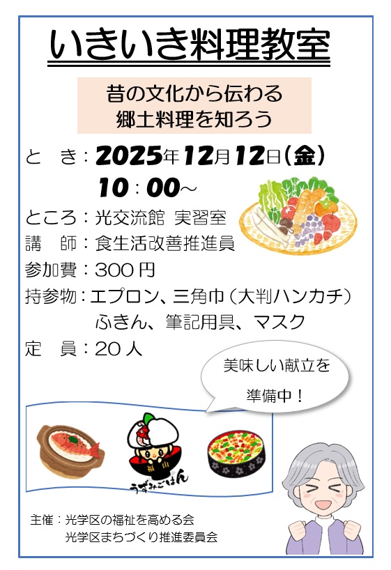 光公民館 実習室にて『簡単にできるおせち料理』を開催します!