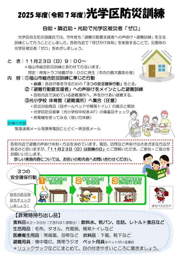 2025年度の光学区防災訓練のご案内です。