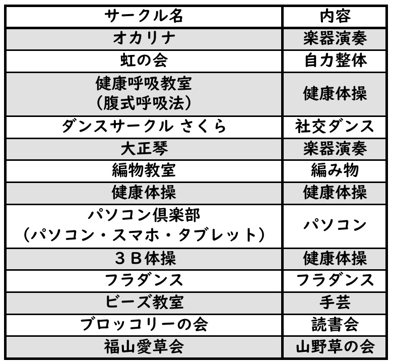 光交流館で実施されているサークルのご紹介です。
